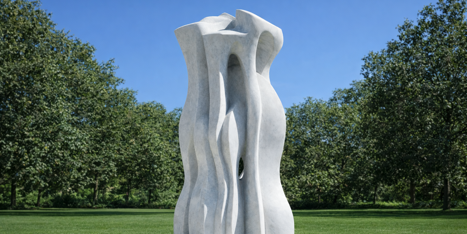 Fusion is a monumental Italian marble public sculpture by Husam Chaya, commissioned by the Municipality of Aley, Lebanon, in collaboration with the United Nations Economic and Social Commission for Western Asia (ESCWA), headquartered in Beirut. Carved from a single block of white Italian marble, this abstract sculpture explores the union of interwoven forms merging into a unified presence. Through fluid geometry and balanced volumes, Fusion reflects themes of dialogue, coexistence, and regional integration—values aligned with ESCWA’s mission of economic and social development across Western Asia.