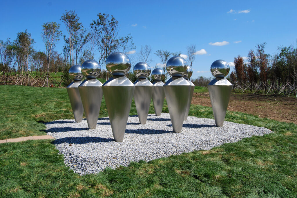 The exhibition featured four monumental sculptures and ten medium-scale works, positioning Chaya among emerging contemporary sculptors engaging with themes of cultural dialogue and international identity.